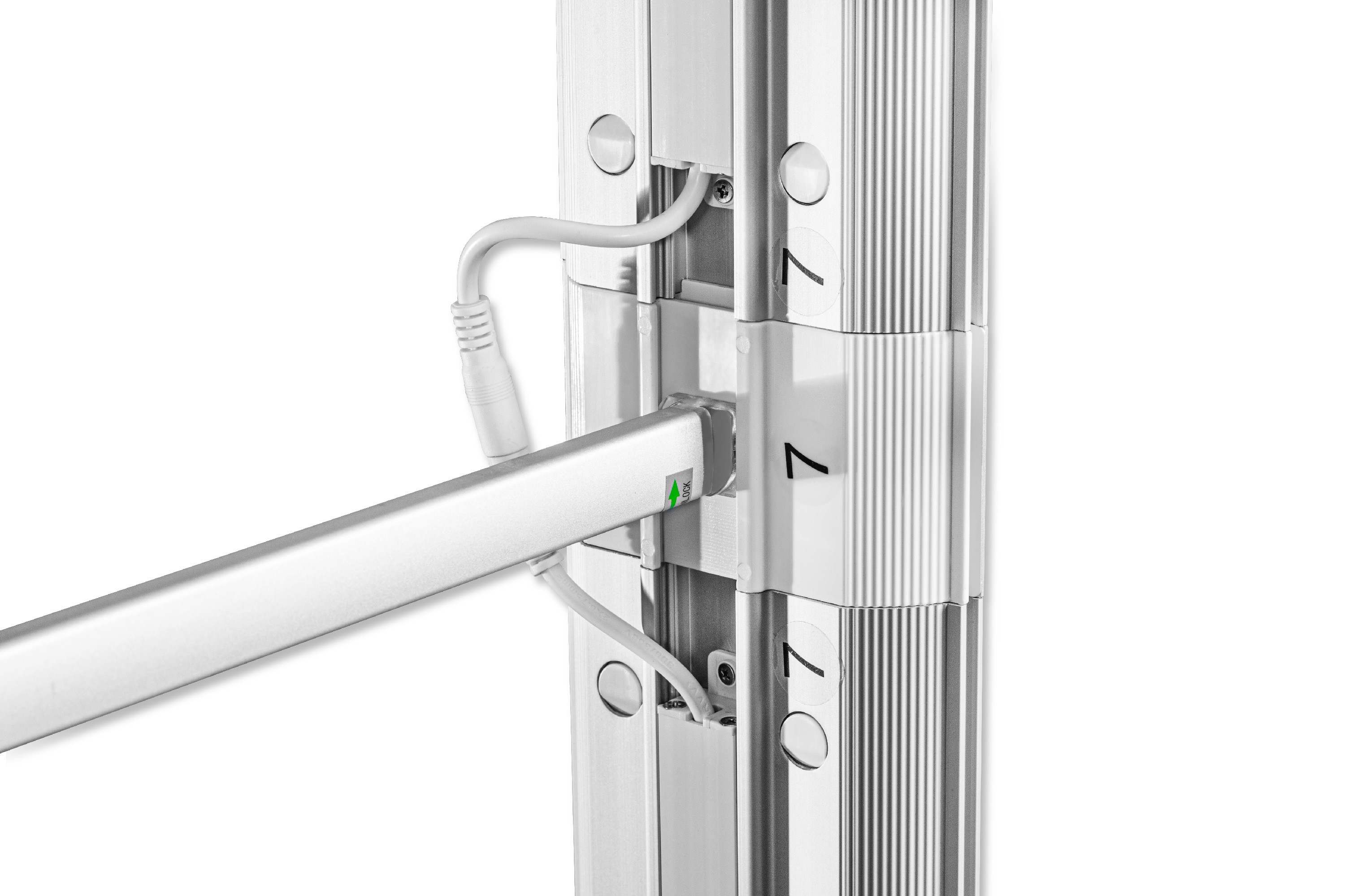 - Aluminiowy profil w kolorze białym o szerokości 12 cm.