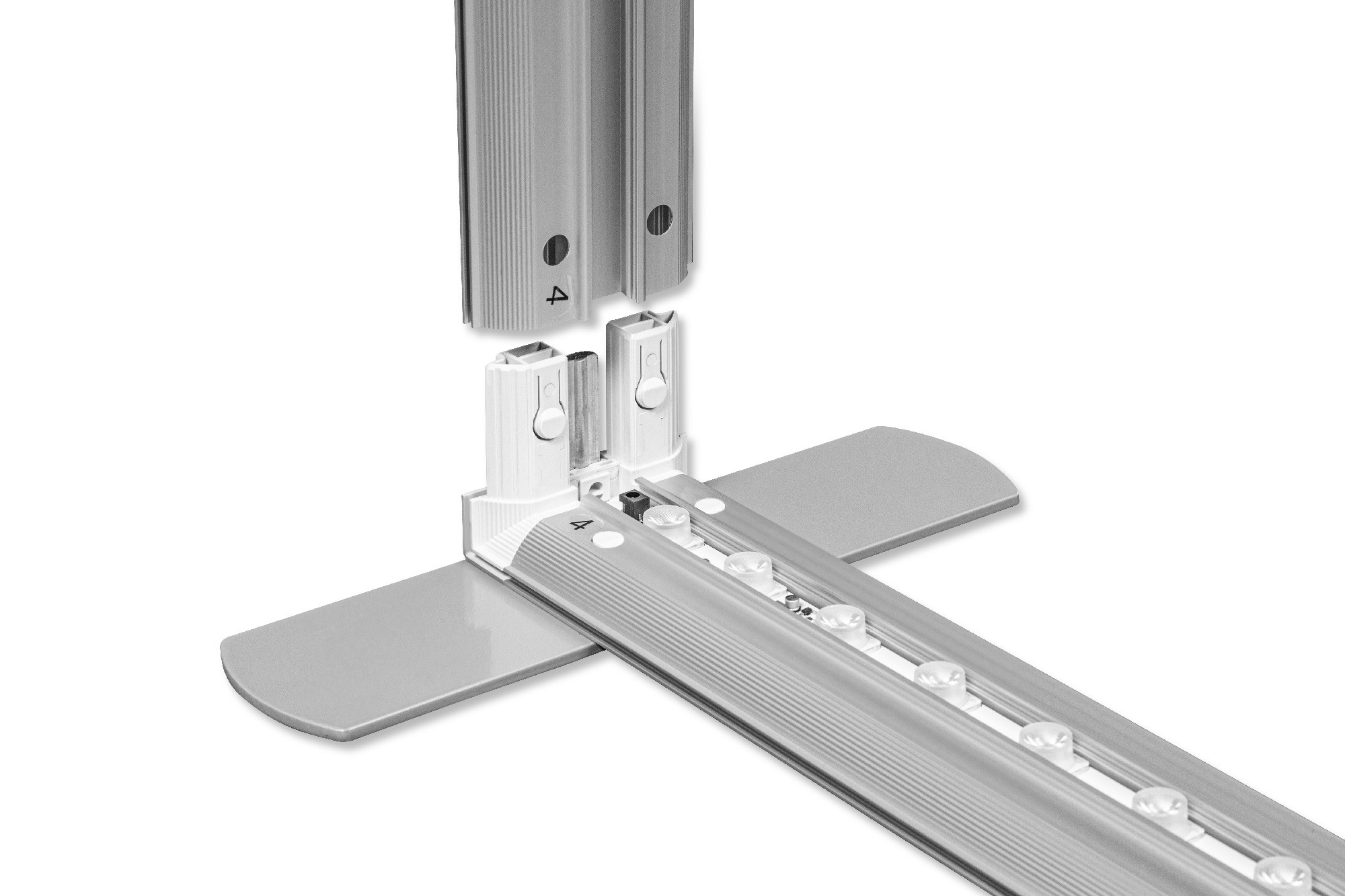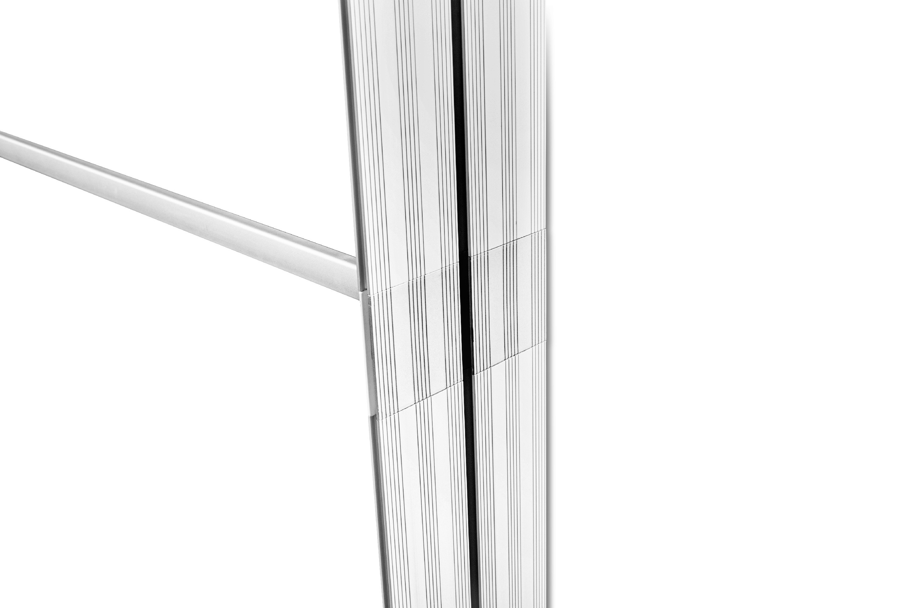 Wszystkie elementy są montowane bez użycia narzędzi - na KLIK. Umożliwia to bardzo szybkie, niemal intuicyjne rozłożenie systemu reklamowego. Materiał z nadrukiem obszywany jest silikonową taśmą, którą wsuwa się w krawędzie profilu, tworząc idealnie napiętą jednolitą całość - nie marszczy się ani nie faluje.