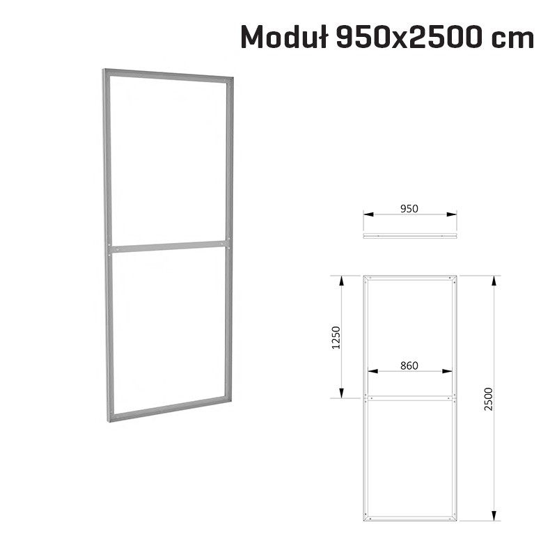 - 1 moduł aluminiowy o wymiarach 1,95x2,5m