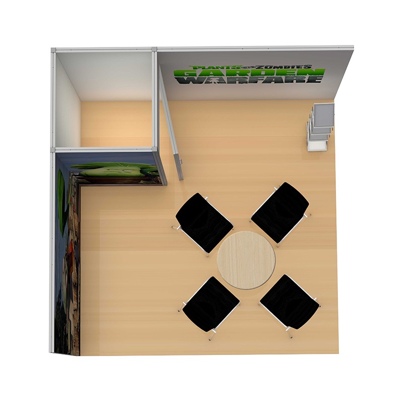 Stoisko ma możliwość wykonania grafiki dwustronnej, dowolnej rozbudowy o dodatkowe moduły a także dokupienia dodatkowego wyposażenia, jak np. dodatkowe oświetlenie, uchwyty mocujące do monitorów, półki, kieszonki na ulotki.
