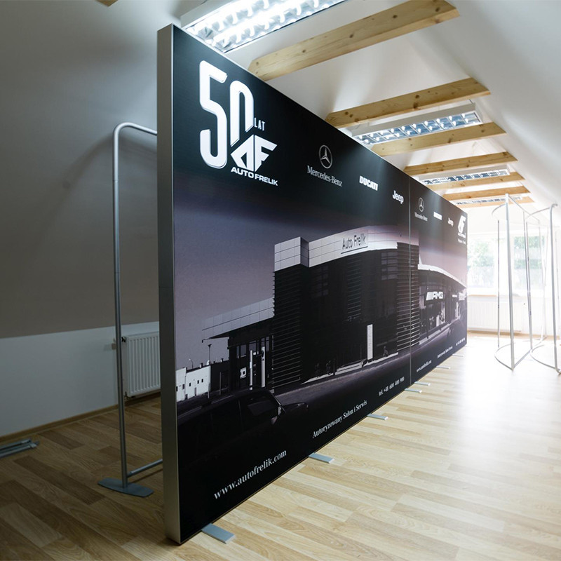 Systemy targowe modułowe zbudowane są na bazie lekkich aluminiowych ram z grafiką wydrukowaną na materiale tekstylnym naciągnięta na ramę - są bardzo lekkie i łatwe do rozłożenia.